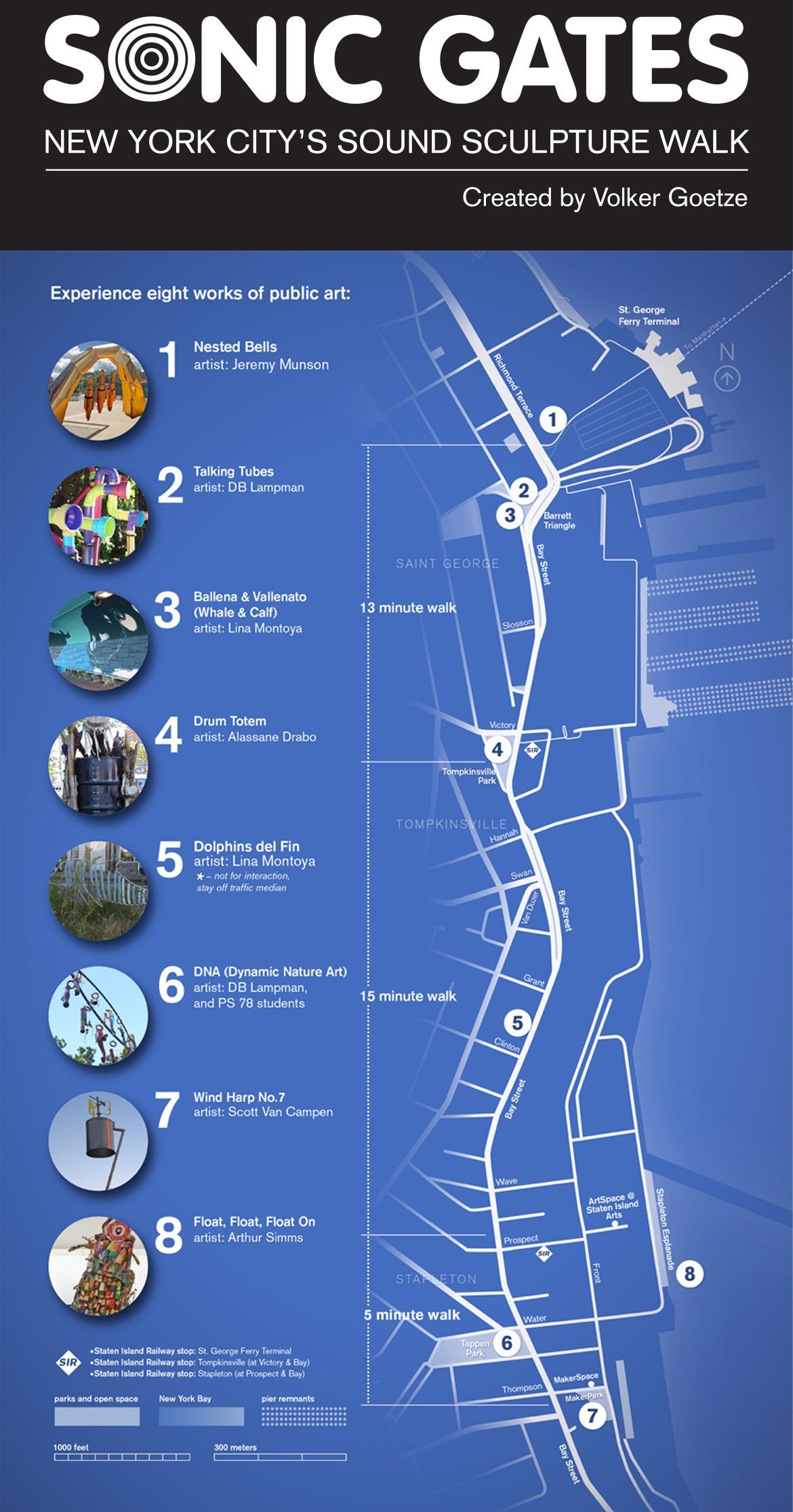 Sonic Gates is created by artist Volker Goetze. The public art project is an initiative of Future Culture launched by Staten Island Arts and the Design Trust for Public Space to foster community connections and shape a vision for culture on the North Shore of Staten Island.